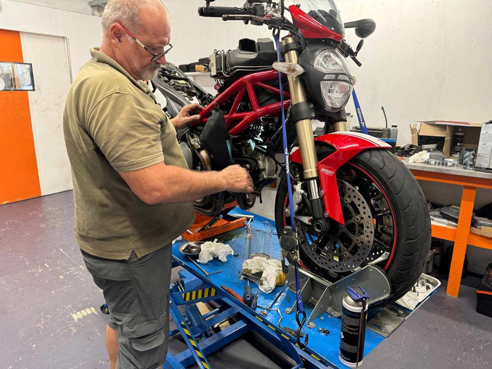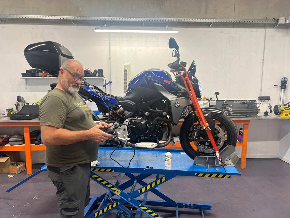 Remplacement et équilibrage de pneus de moto à Solenzara : MS MOTORS vous présente ses dernières photos.